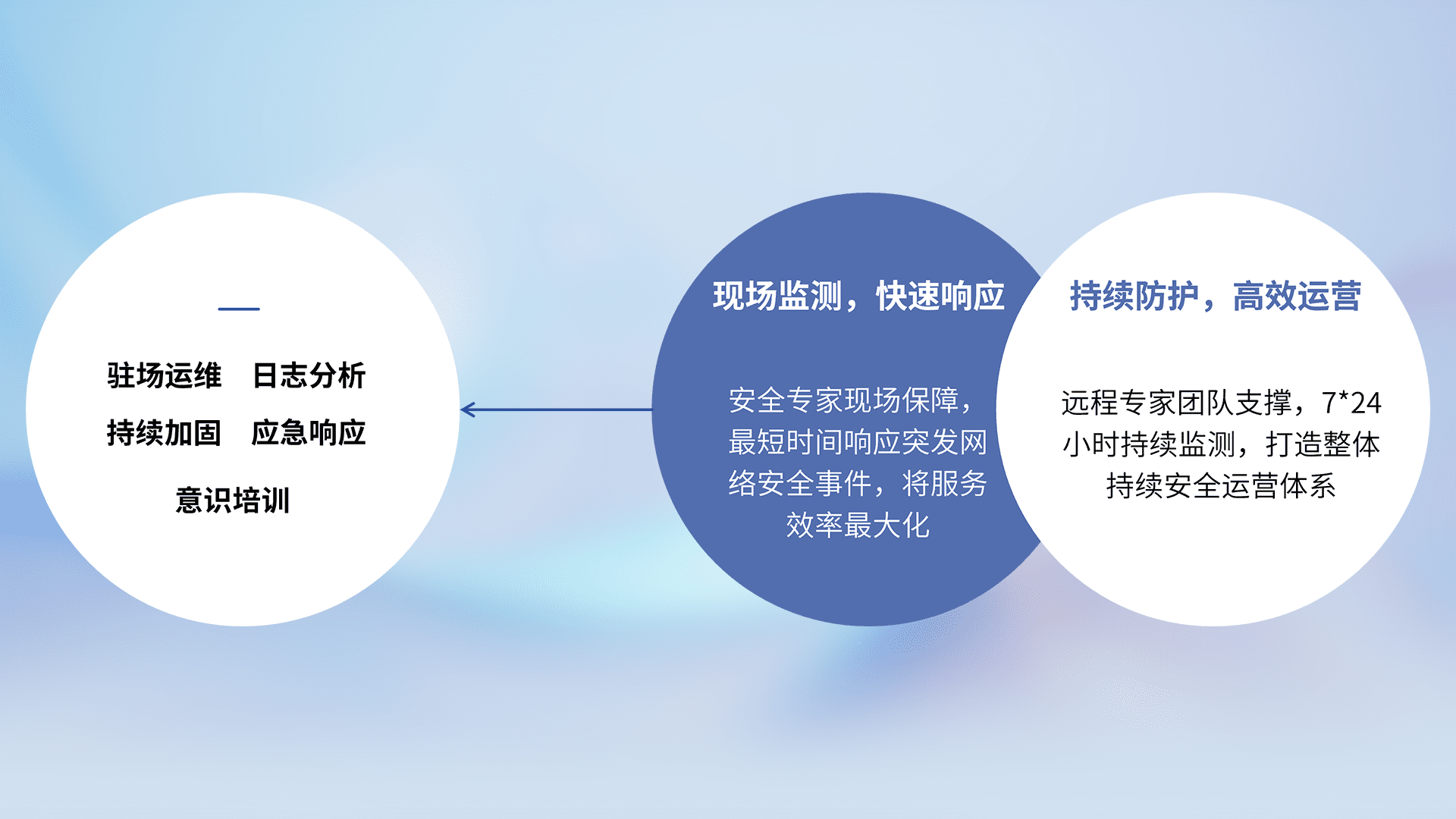 7X24小时持续监测安全事件,保持安全策略有效性,降低资产脆弱性风险,,,精准拦截黑客攻击,,,减少被黑客利用的机会,,,第一时间遏制,,,降低损失。。。。